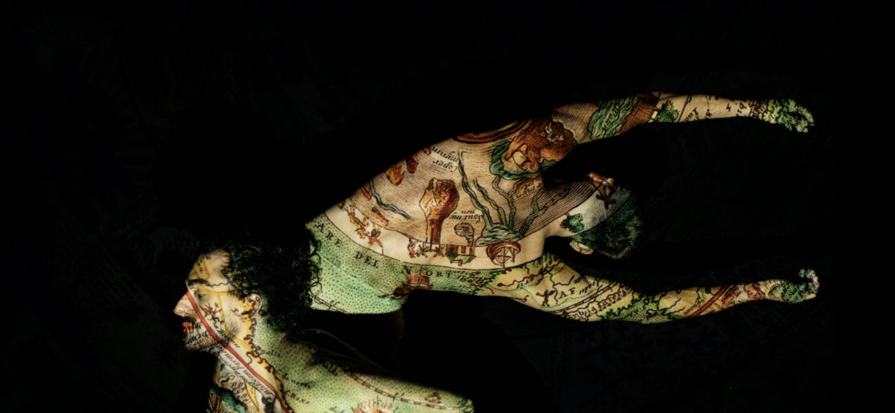 Nuova Figura charts the choreographic journey of Mangiola and the dancers, exploring the human gaze and images we create of our world. The work takes as its starting point the world map of the cosmos drawn in 1603 by Gozitan cartographer, astronomer, and astrologer, Antonino Saliba. In this extraordinary document Saliba combined ancient pagan and medieval Christian cosmology with Renaissance beliefs and experiences. He imagined a world that appears at once orderly and chaotic, spiritual and temporal, familiar and fantastic; filled with decorative hemispheres, rings of fire, demons, salamanders, and people digging into the earth.